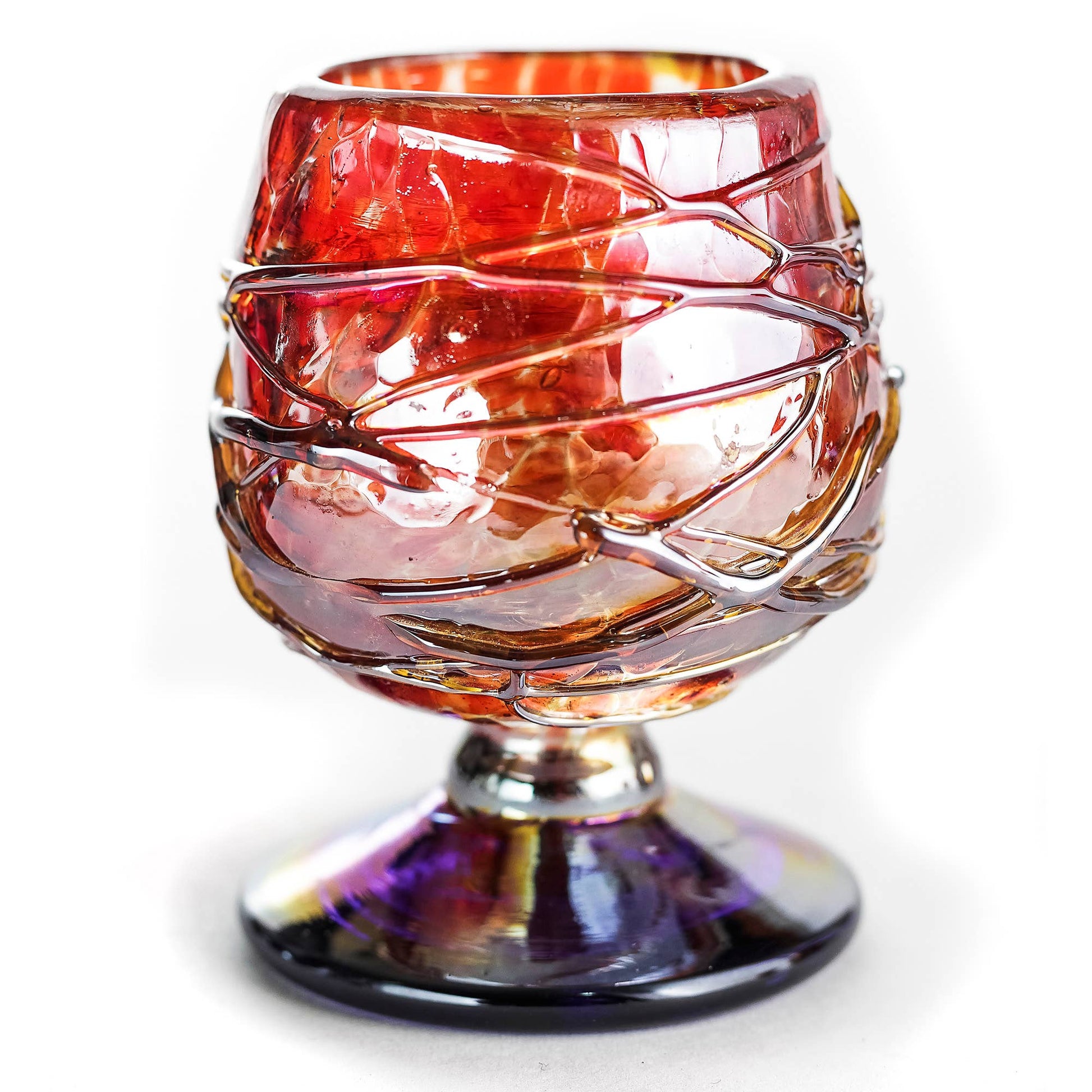 Celebrate mezcal and tequila with MEXTEQUIL Hand Blown Tequila. Each glass is expertly hand-blown by skilled Mexican artisans. Each glass features a striking red/gold color shift with a cobalt blue base, adding elegance and an authentic touch to the tasting experience. Designed in the traditional copita shape, these glasses enhance the aroma and flavor of fine spirits, making them perfect for sipping mezcal, tequila, or other favorites. These handcrafted copitas are ideal for gatherings, special events, or as a memorable gift for tequila enthusiasts and collectors. With slight variations that showcase the artisanal process, each glass is unique, embodying the beauty and spirit of Mexican craftsmanship.