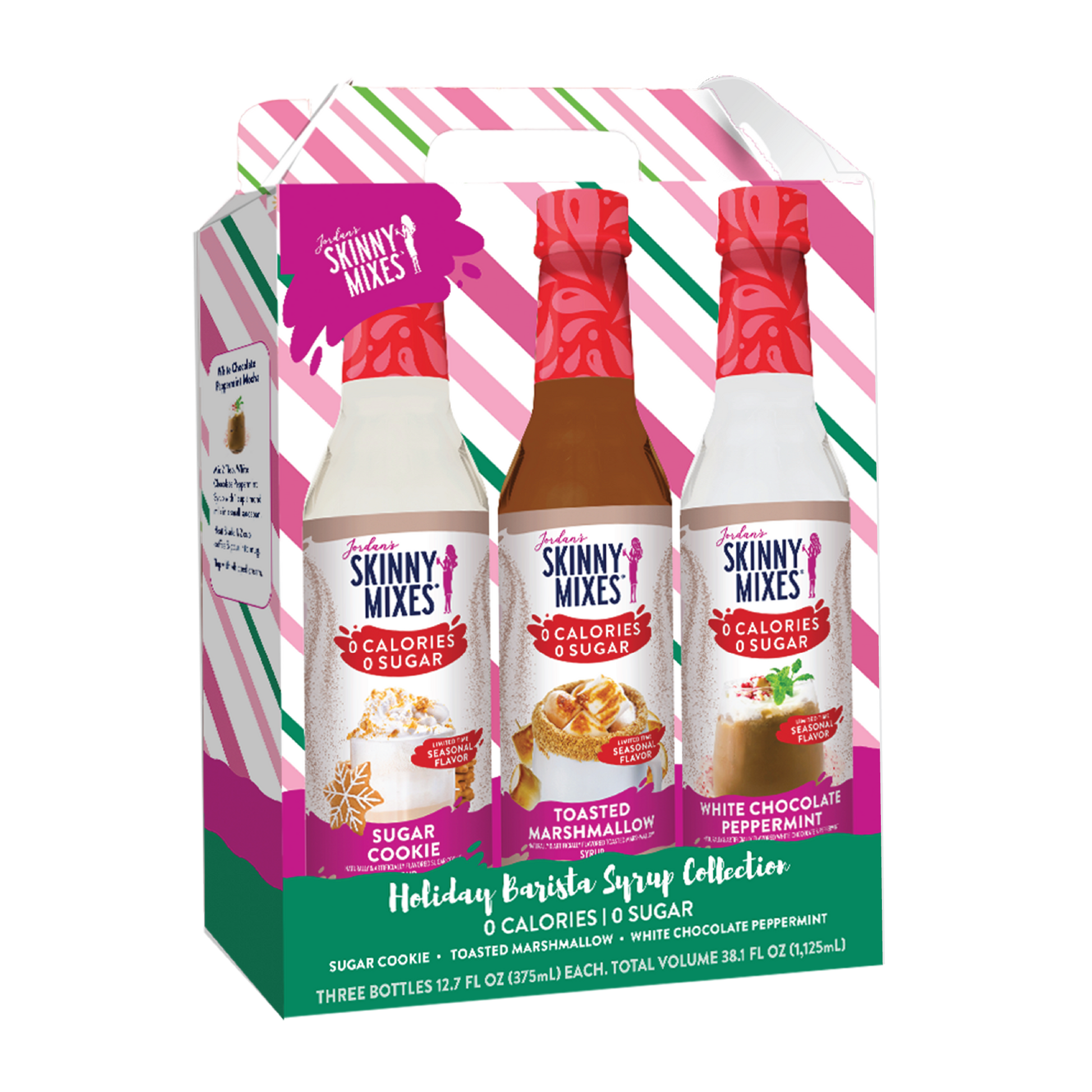 Your winter holidays will become more special with our scrumptious assortment of syrups in a seasonal holiday gift box. Included is 1 bottle of each, Toasted Marshmallow, White Chocolate Peppermint, and Sugar Cookie syrups. Our assortment of syrups also make a wonderful gift for friends and family. Add guilt free flavor to hot chocolate, coffees, lattes, protein shakes, smoothies, baking, oatmeal or just about anything.
