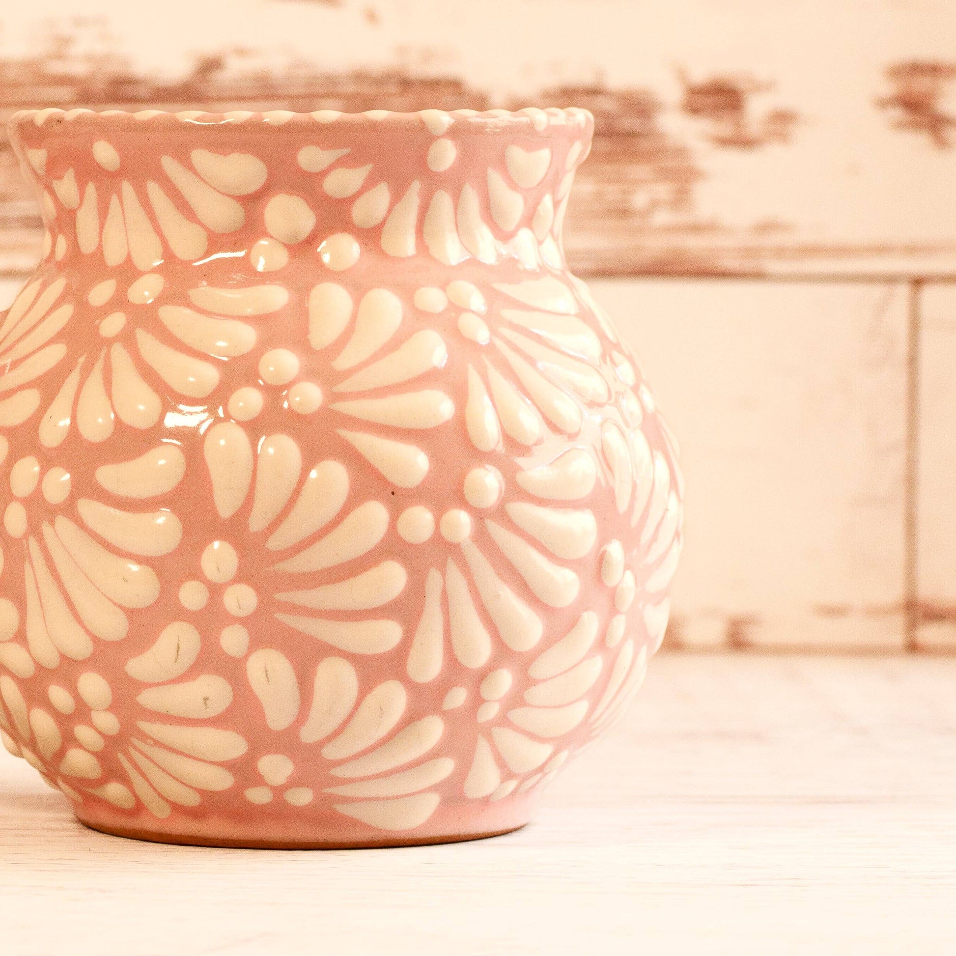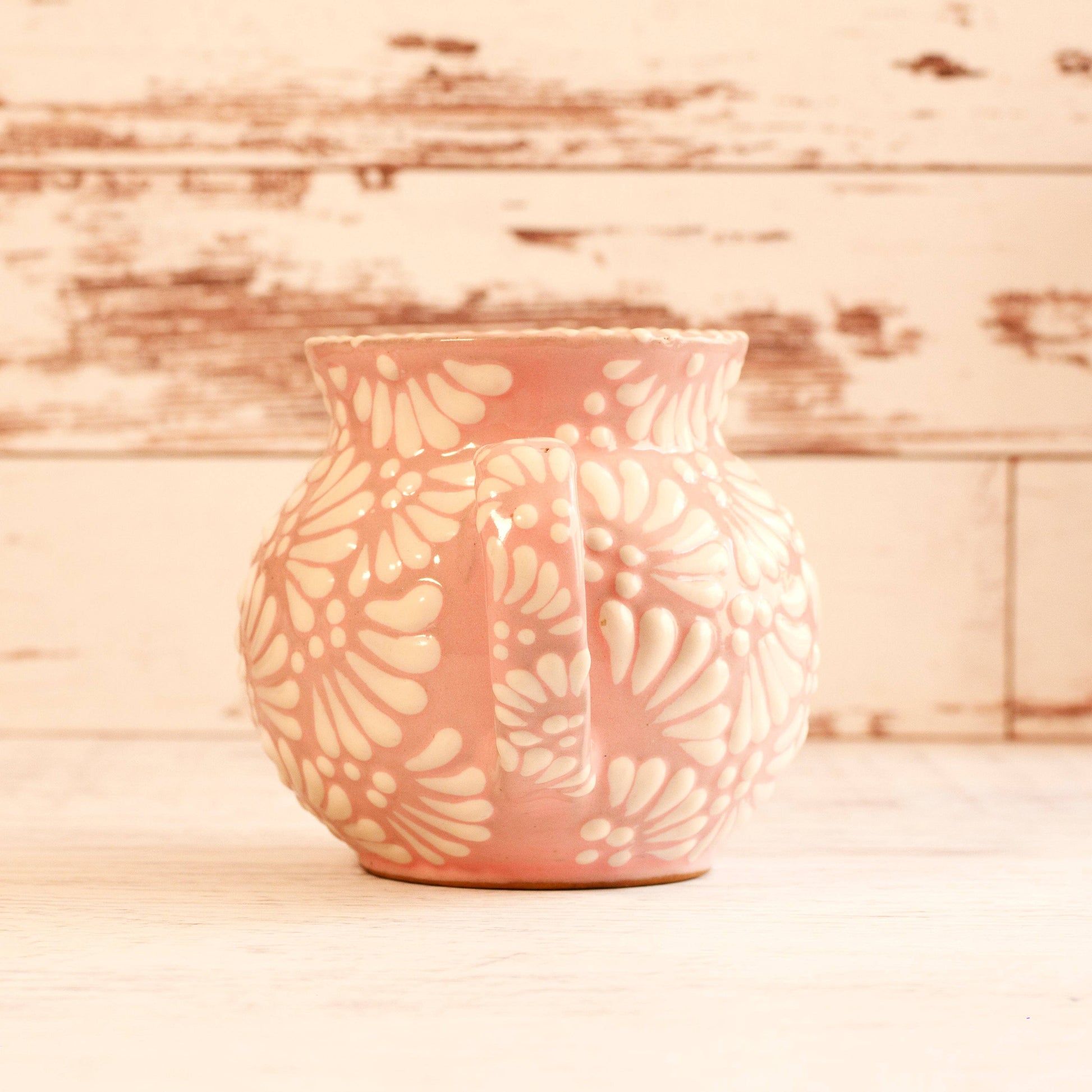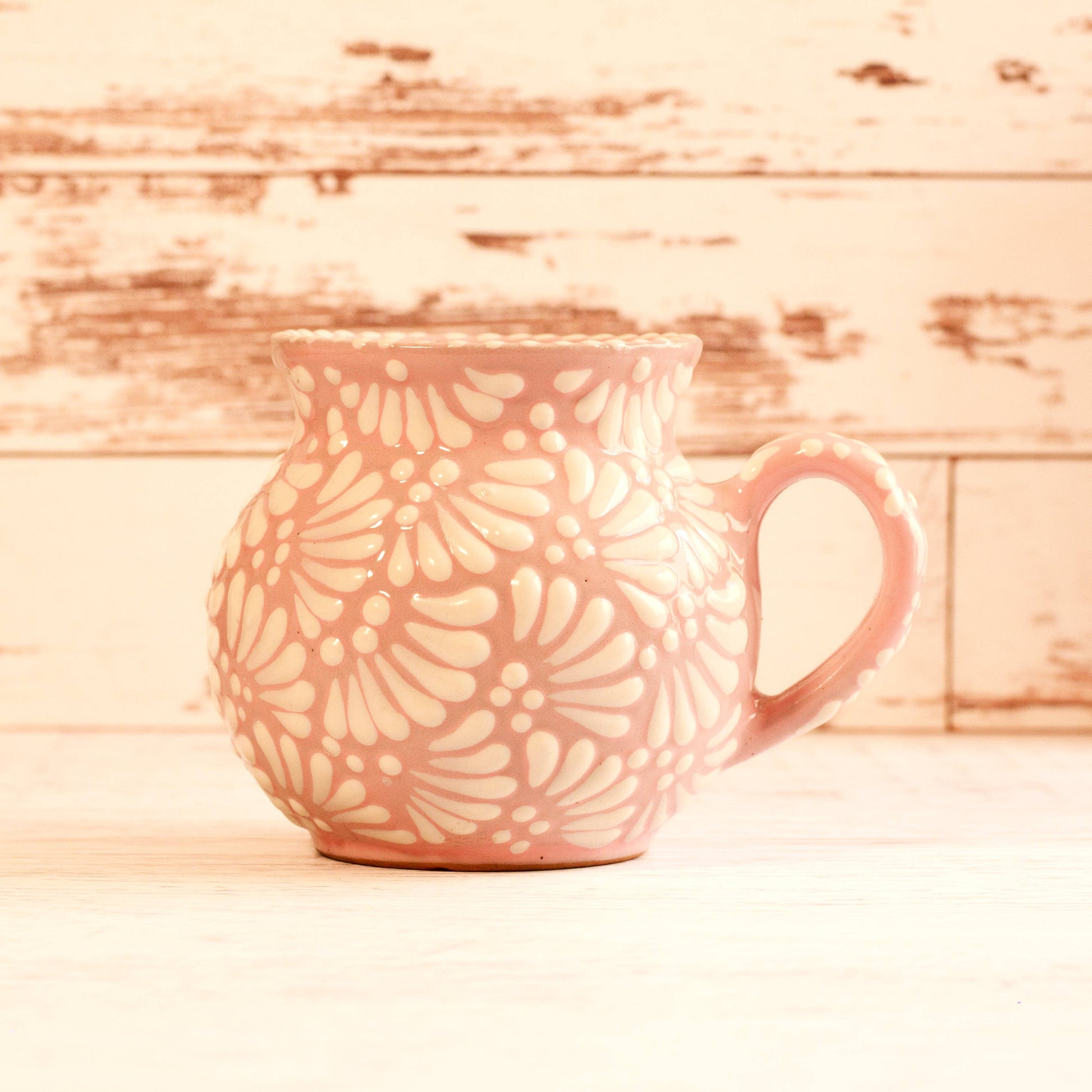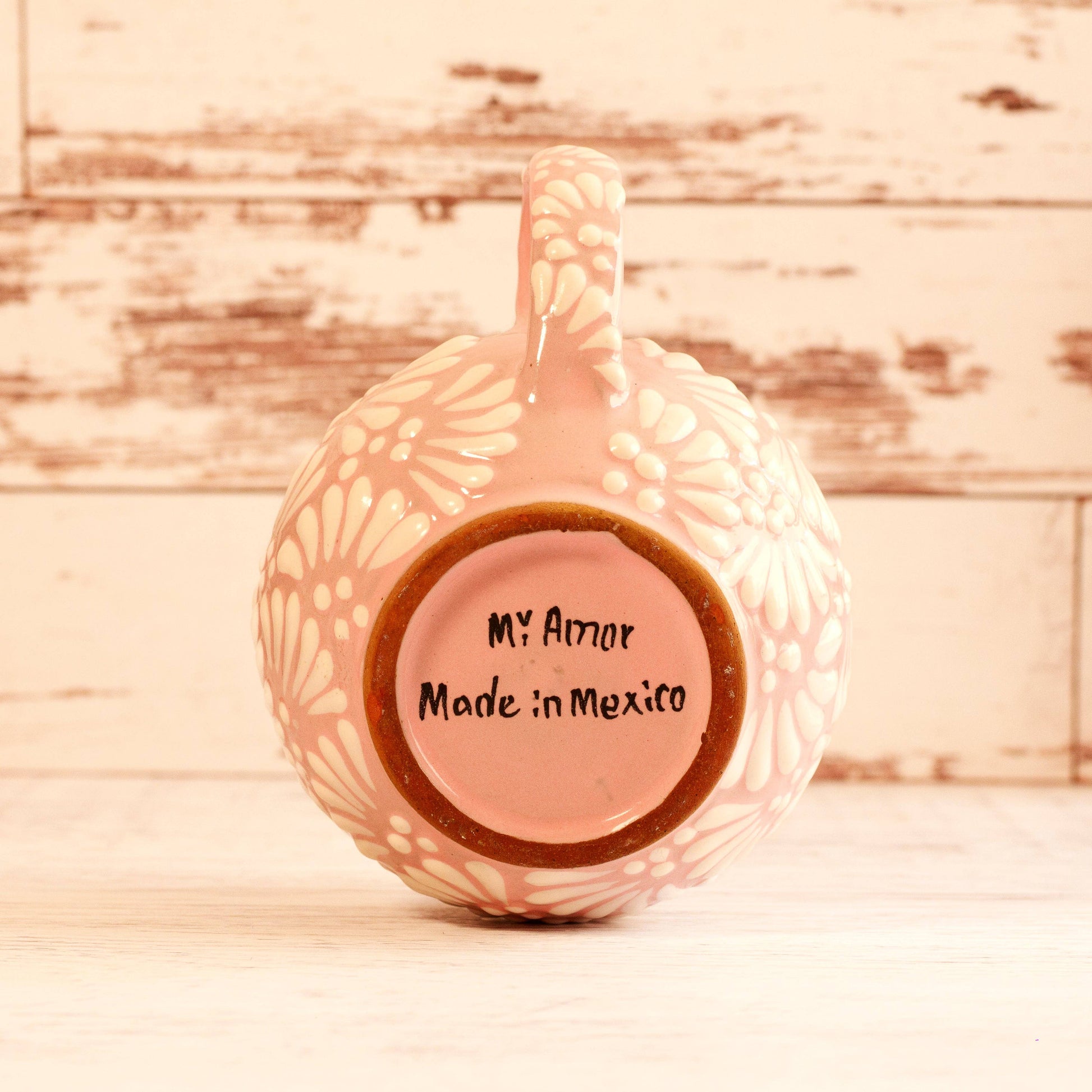 Step into a world of artisanal elegance with the Coquette, Jarito-shaped marvel that redefines the art of sipping. The Coquette Mug enchants with its romantic palette of blush pink and pure white paint design, adding a tactile dimension that invites your touch every time you lift it to your lips. Using only the finest toxin-free earthen materials, we've ensured each mug not only looks beautiful but is also safe and durable. Our mugs proudly display the unique raised Talavera painting, a testament to the skill of our artisans. Whether gifting or adding to your own collection, we offer both individual mugs and sets of 2, 4, or 6 to suit every need.