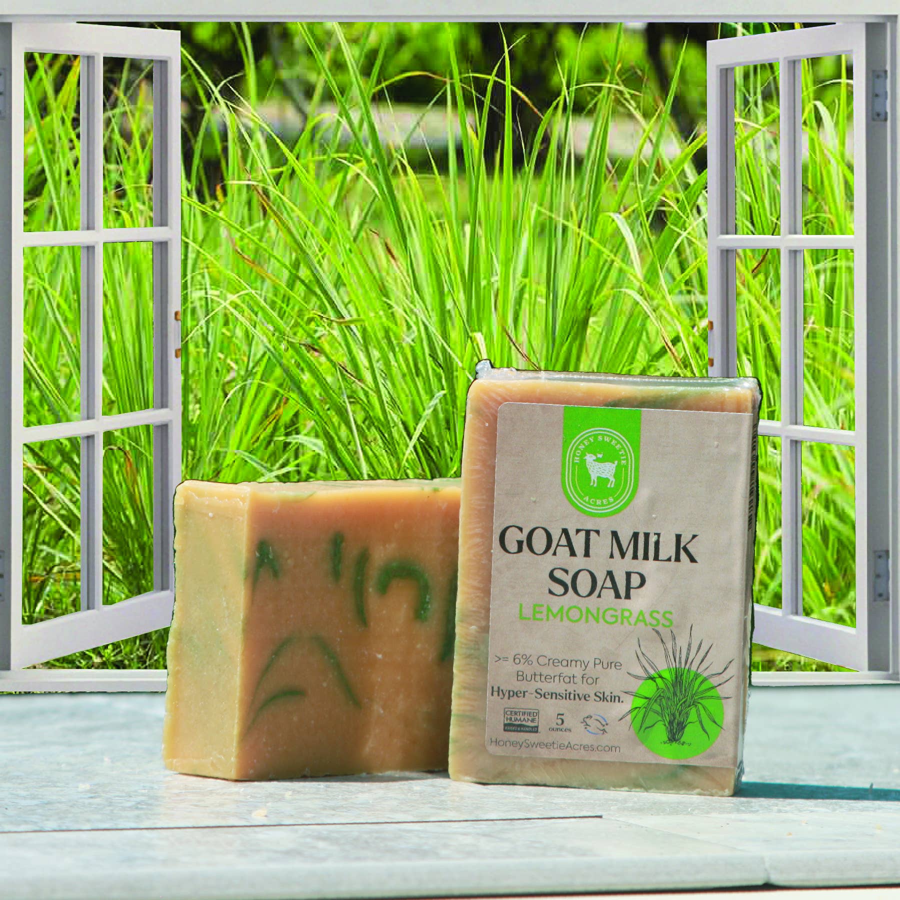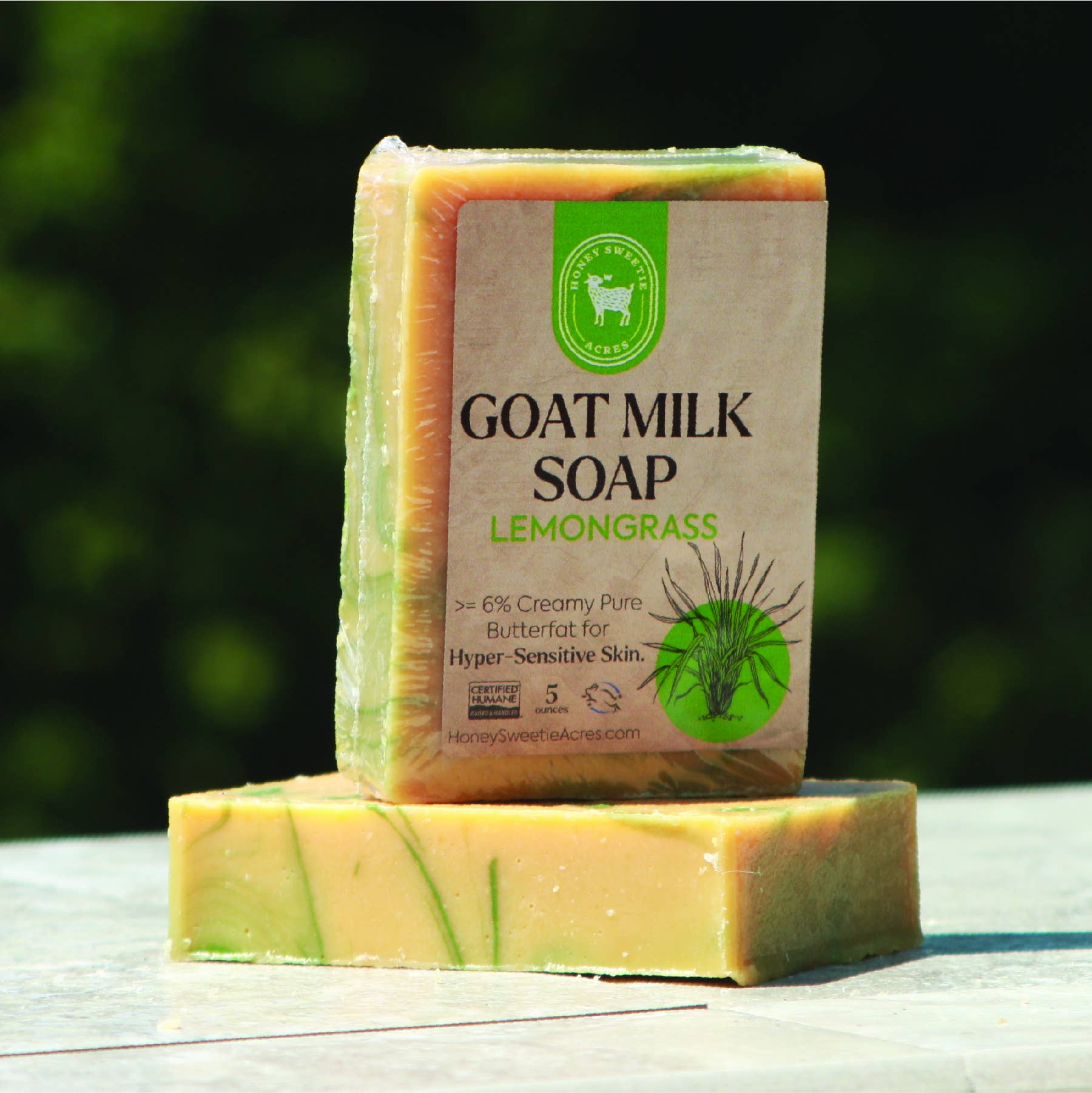 Ingredients: Organic Coconut Oil (Cocos Nucifera Oil), Organic Extra Virgin Olive oil (Olea Europaea Oil), raw goat milk, RSPO sustainable palm fruit oil (Elaeis Guineensis Oil), castor oil (Ricinus Communis oil), organic shea butter (Butyrospermum Parkii), unrefined organic cocoa butter (Theobroma Cacao Seed Butter), lemongrass essential oil (Cymbopogon citratus), and natural vitamin E (tochoperol).