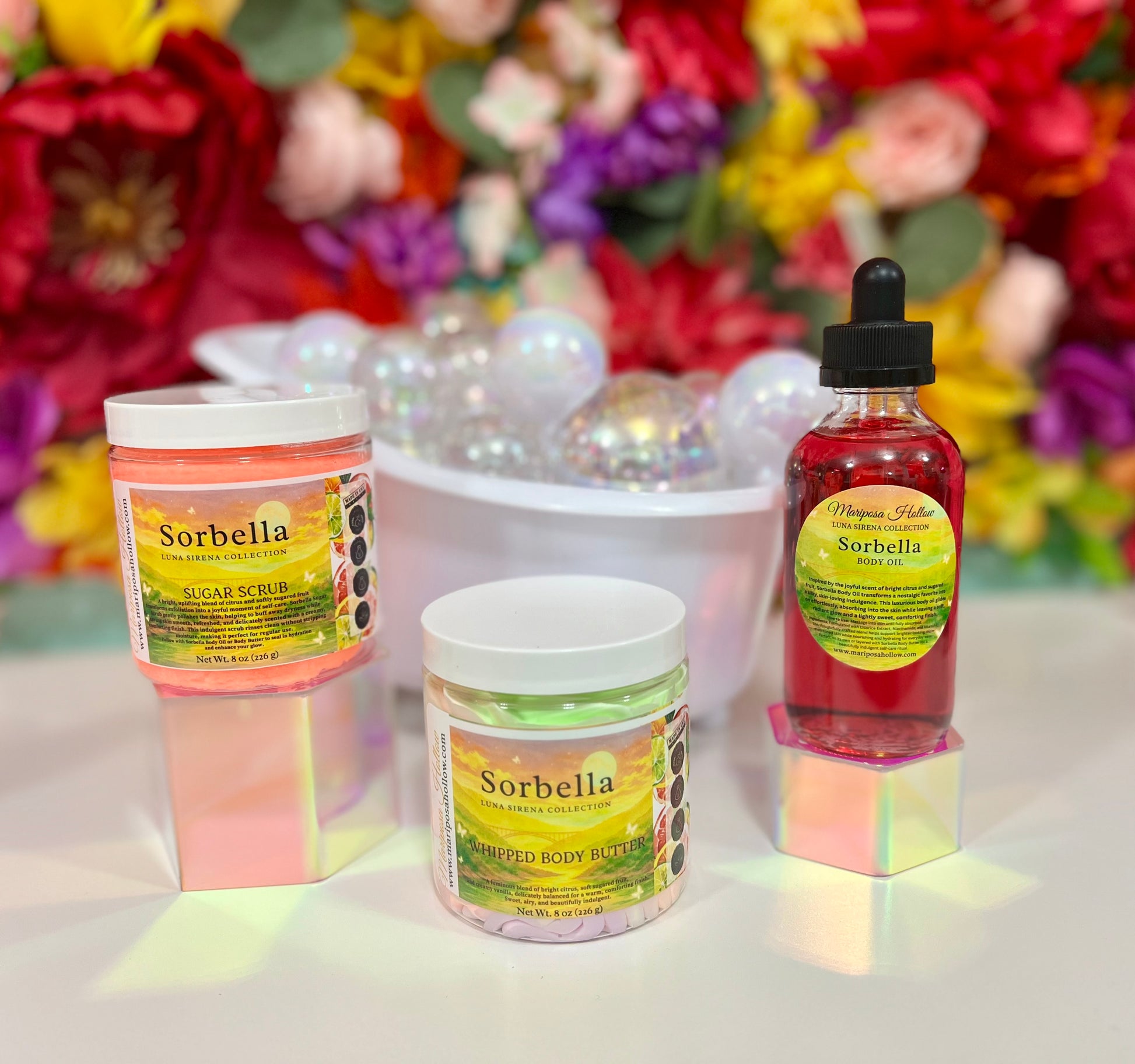 Bright, creamy, and deeply nourishing, Sorbella Body Butter is a rich yet whipped moisturizer designed to leave skin feeling soft, smooth, and comfortably hydrated. This velvety butter melts into the skin, delivering lasting moisture without a heavy or greasy feel.